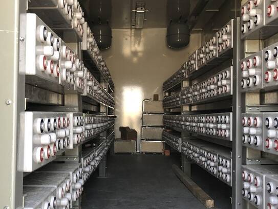 The water coolers are a new variant of INTERTEC's novel HYBRICOOL range that operate directly from a DC power supply - making them an efficient solution for solar-powered installations. These cooling units are specially designed to supplement passive coolers operating in process plants, with a heat exchanger element that can be installed inside the water storage tank of a passive cooling system to decrease temperature. This interior element is isolated from the rest of the externally-mounted refrigeration system, making it both an efficient and economic solution for explosion proof applications such as the battery compartment of this shelter.